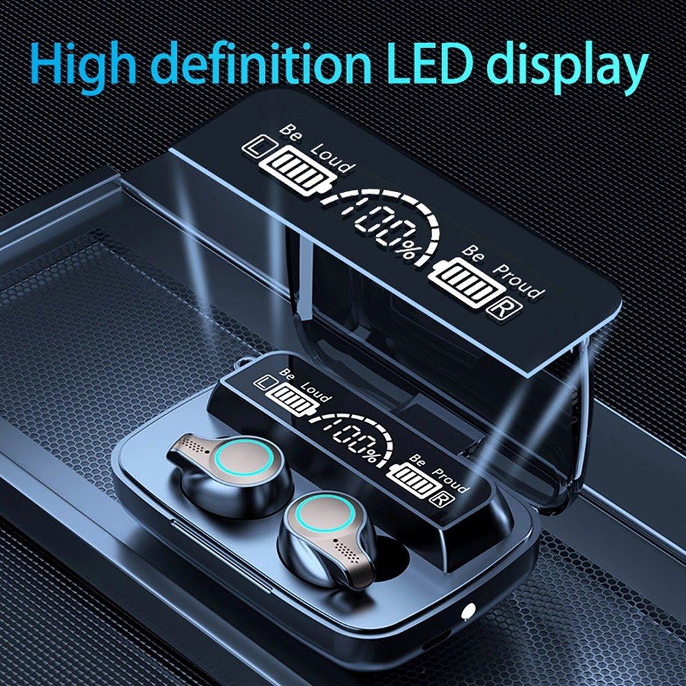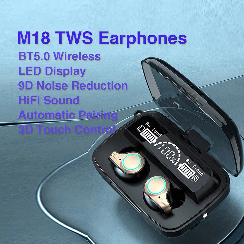 M18 TWS BT5.0 Wireless Earphones In-Ear Headset HD LED Display 9D Noise Reduction 3D Touch Control IPX7 Waterproof Earbuds With Charging Base Compatible With Andriod iOS Windows