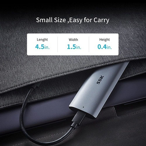 Applicable SSD & ndash; This USB-C M.2 SSD Enclosure supports SATA-based M.2 NGFF(B Key/B+M Key) 2242 2260 2280mm solid state drives, it doesn't support NVMe/PCIe M.2 M Key SSD;Tool-Free- This M.2 SSD Reader with Tool-Free design allows quick and easy installation of your M.2 SATA SSD.Both side can be inserted; USB 3.0 Gen 1 5Gbps high speed transmission;Easy to use and portable;Aluminum Alloy Shell- This M.2 SATA SSD Adapter adopts aluminum alloy shell, slim design, durable and excellent heat dissipation, be portable and easy to carry; Note: SATA SSD is not included.Blue Indicator- Blue Indicator shows the data transfer status, easy and clear;SSD file system must be supported on host operating system to be accessible. As with all SSDs, new media must be formatted before use.High Quality Master Chip- Adopts high performance controller IC, Complies with UASP, which can effectively improve the speed. Plug-and-play,compatible Multi OS, Windows 7/ 8/ 8.1/ 10/ Linux/MAC/Android.