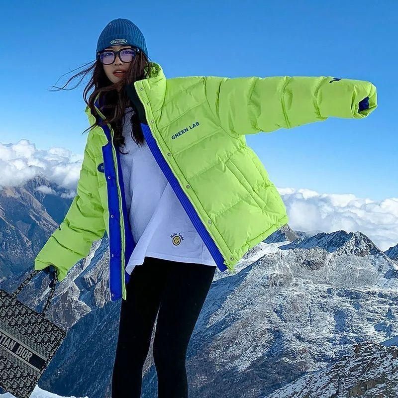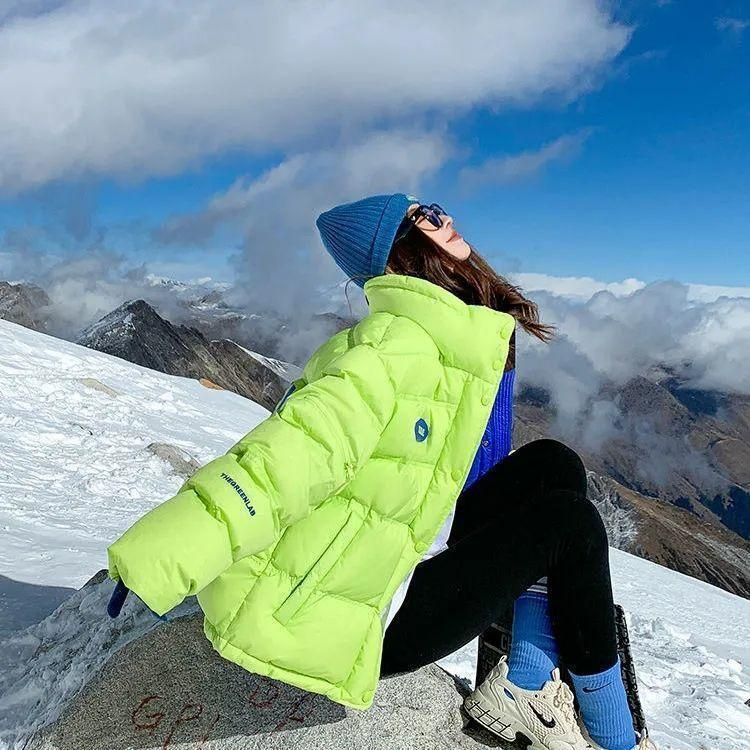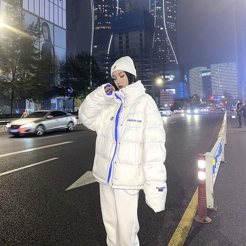 Buy M27 Glossy Washable down Cotton-Padded Jacket Women's Short 2022 New Korean Style Loose Lapel Printed Fashion Puffer Jacket Coat in Nigeria