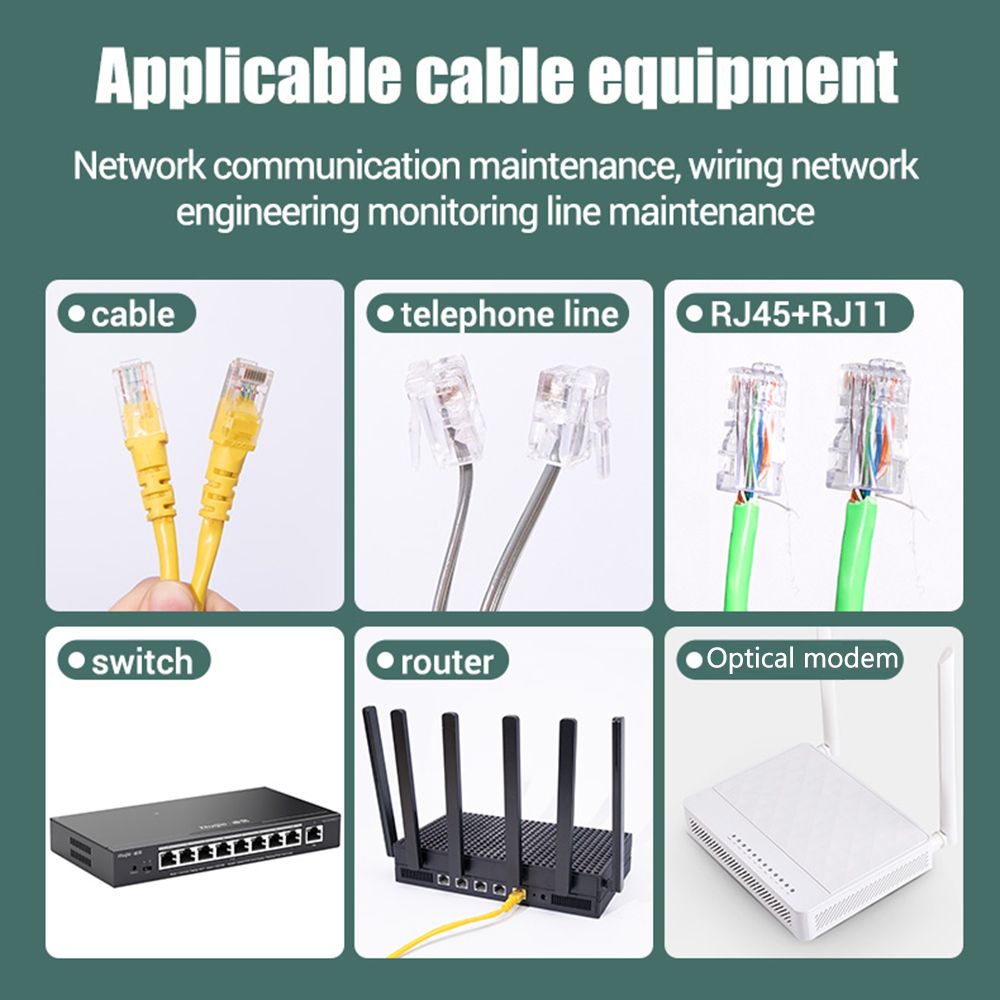 Applicable to RJ11, RJ45, telephone lines, router, optical modem, etc., widely used in network communication maintenance, wiring network engineering monitoring line maintenance.