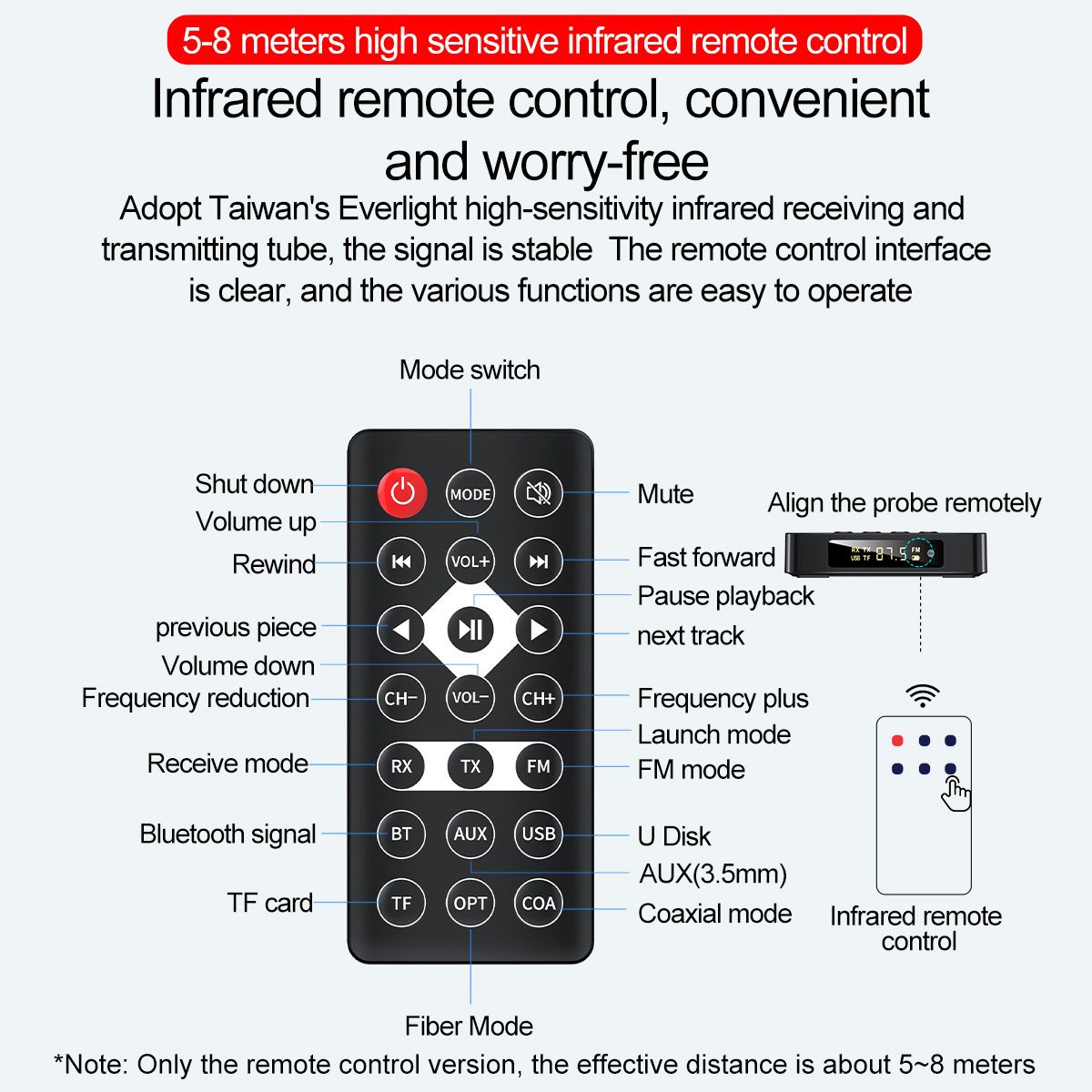 Support 5-8m infrared remote control, all kinds of functions.