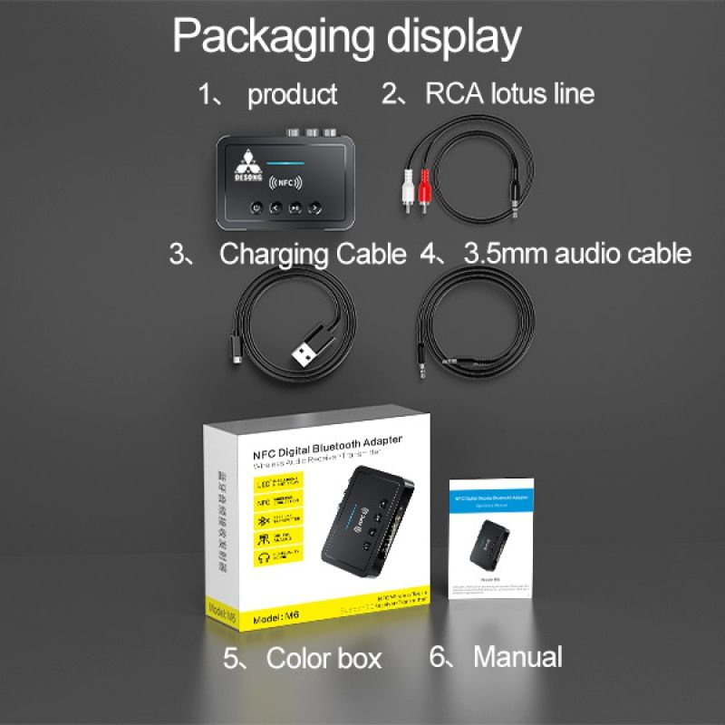 1X New M6 Portable NFC Bluetooth Receiver 5.0 Bluetooth Transmitter FM 3 in 1 Bluetooth Adapter Computer