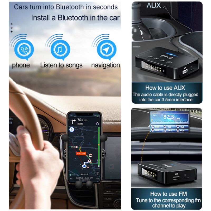 Bluetooth receiving (Rx), Bluetooth transmitting (TX), FM transmitting three in one design.