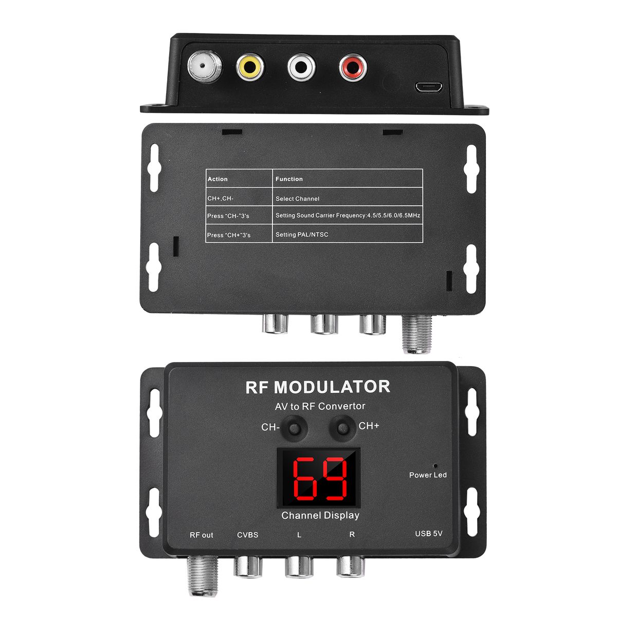 Default Factory Setting: Channel 21 (471.25MHz).PAL