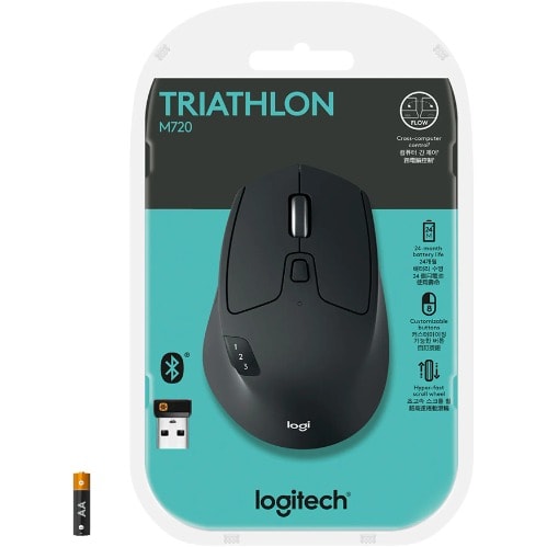 Built for endurance, versatility, and comfort, the M720 Triathlon Mouse helps you succeed in a multi-device world. You’ll be powering through tasks thanks to the Easy-Switch technology that lets you switch seamlessly between 3 computers. You’ll fly through documents and web pages using the hyper-fast scroll wheel, and hardly spare a thought to changing batteries thanks to 24 months of power on one AA battery. The large-sized sculpted shape fits comfortably under your hand, and the keys are designed to withstand up to 10 million clicks. You can connect to Windows and Mac via the tiny Unifying receiver or via Bluetooth Smart wireless technology.