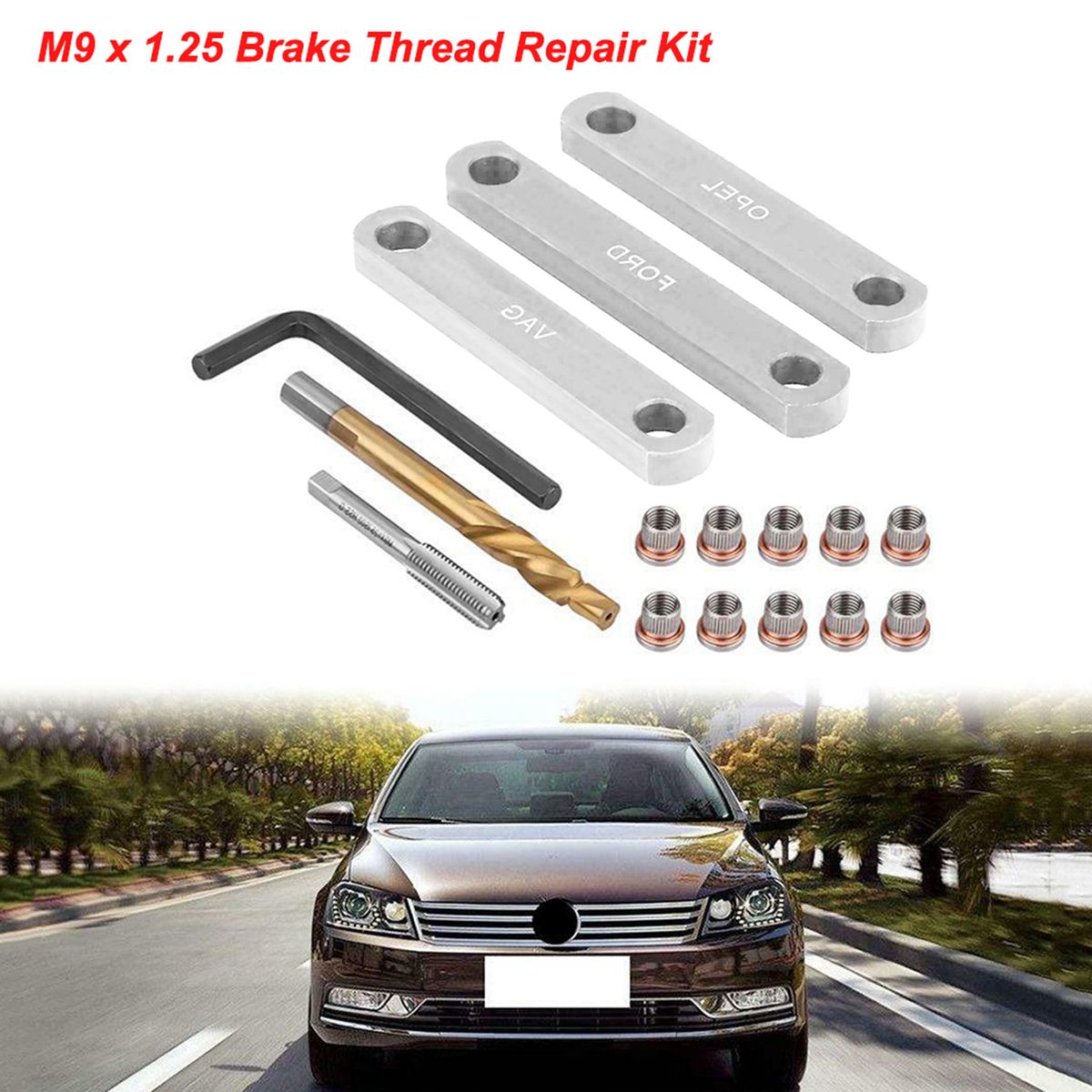 This brake caliper guide thread repair kit can repaire defective threads professionally and quickly.