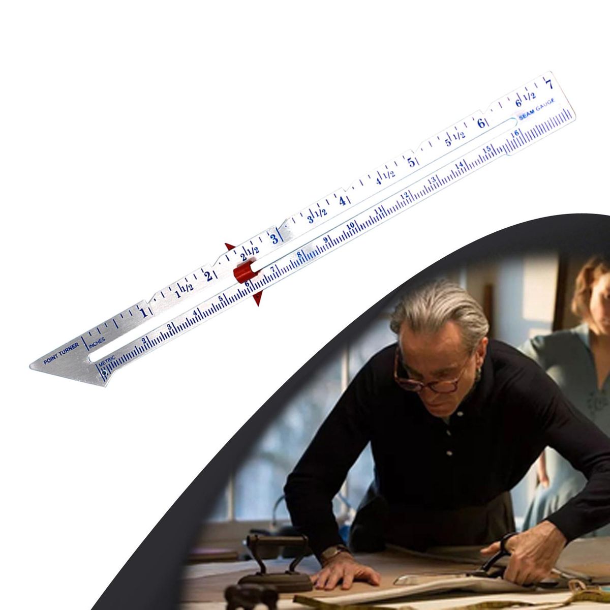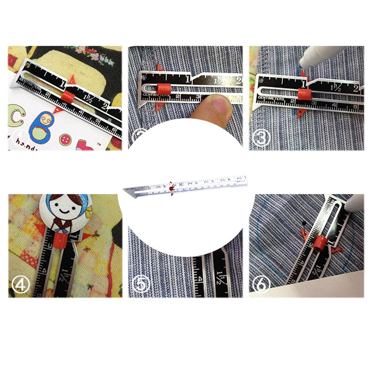 Can be used to measure the diameter of buttons, measure button diameter positioning and buttonholes, draw circles, etc.