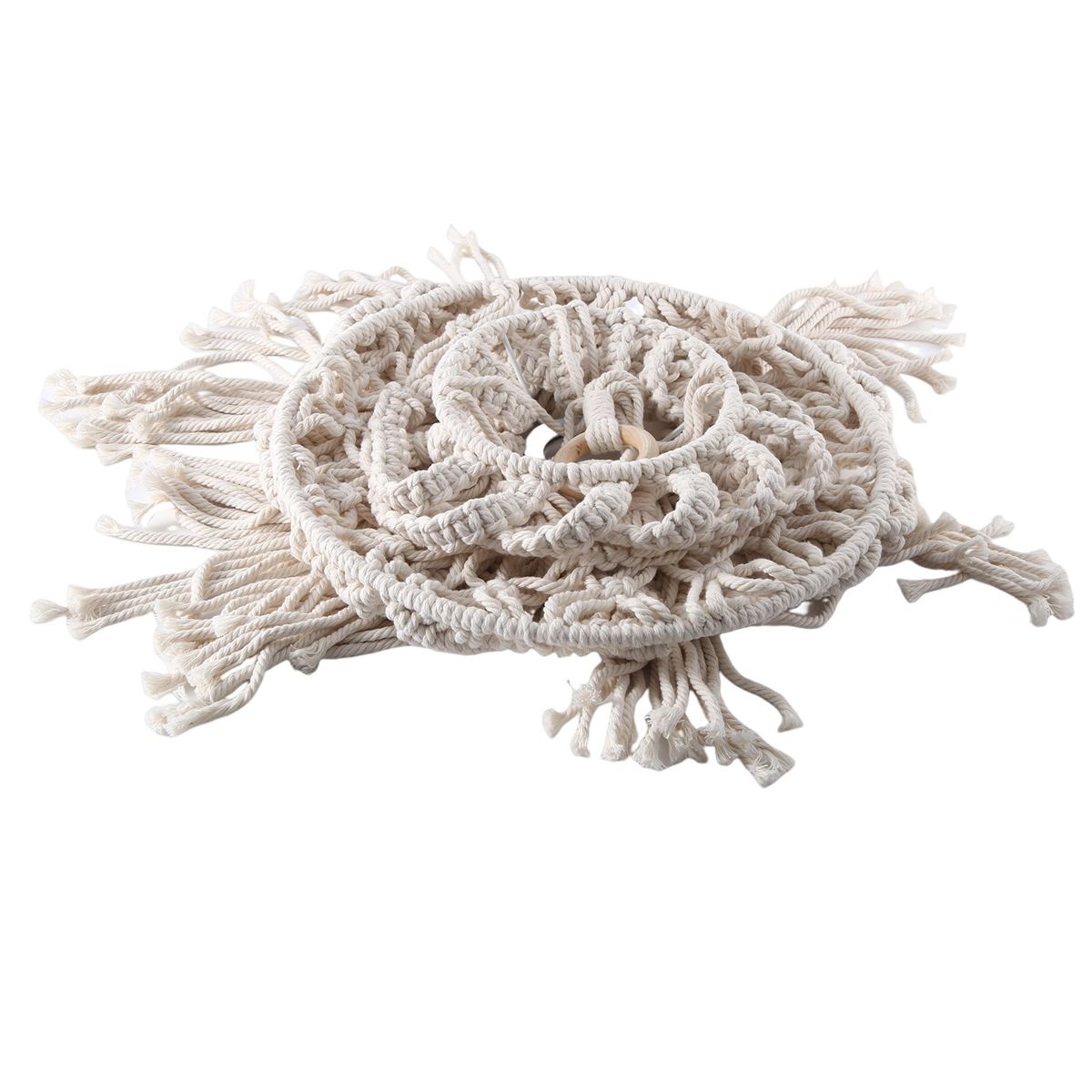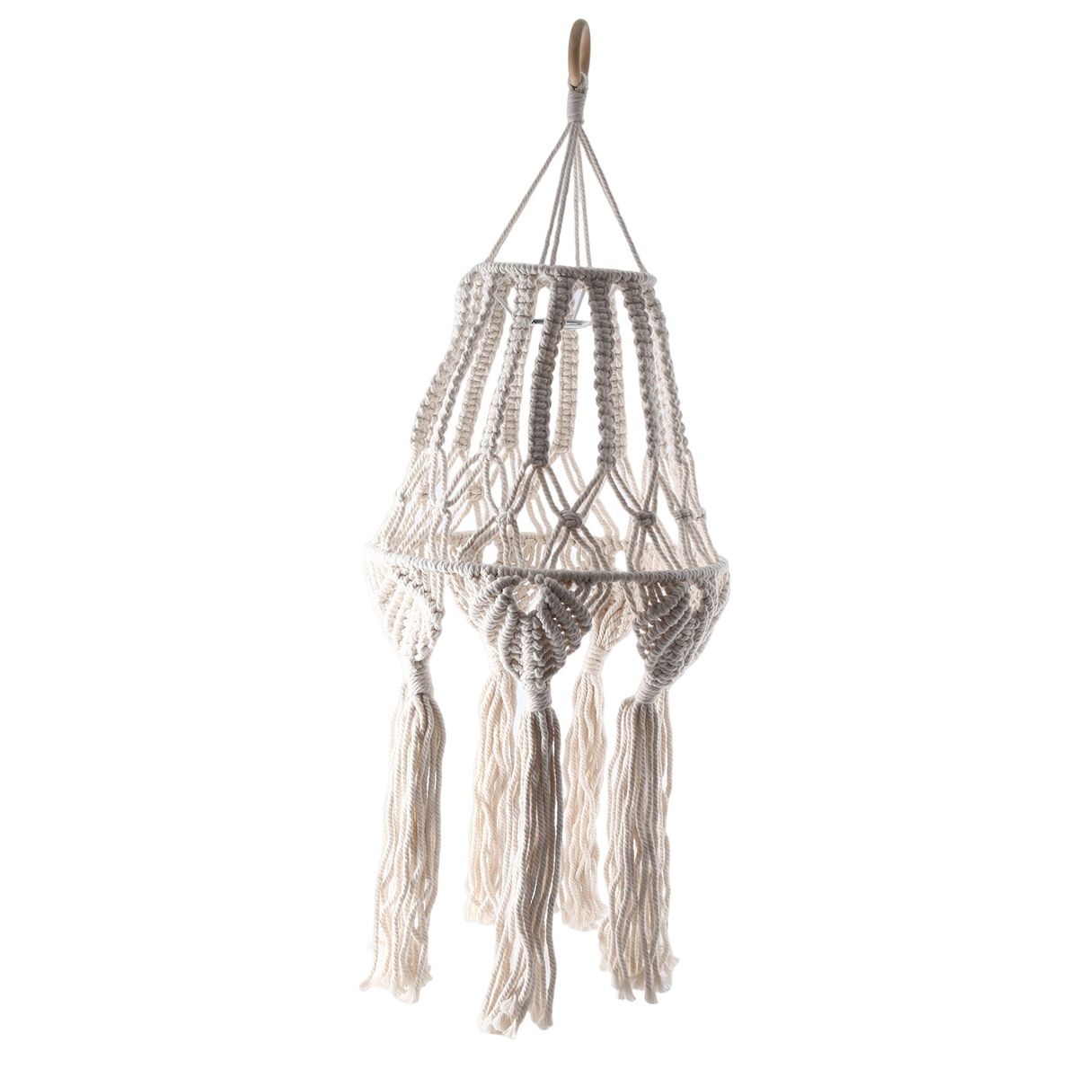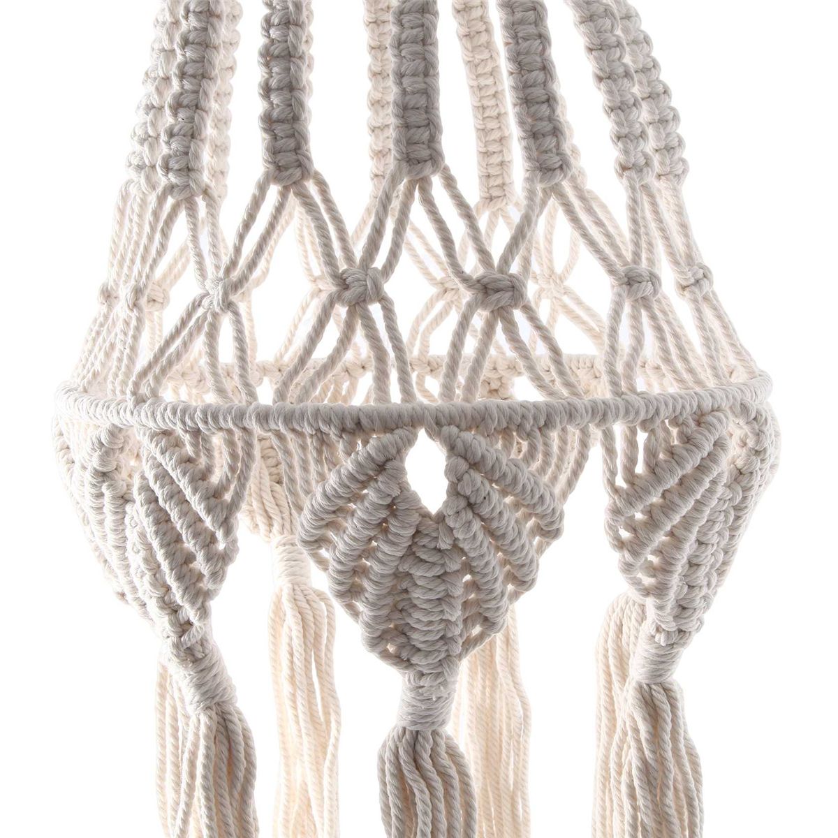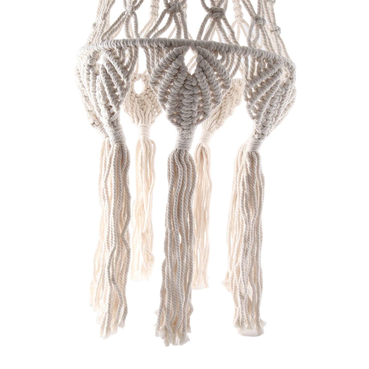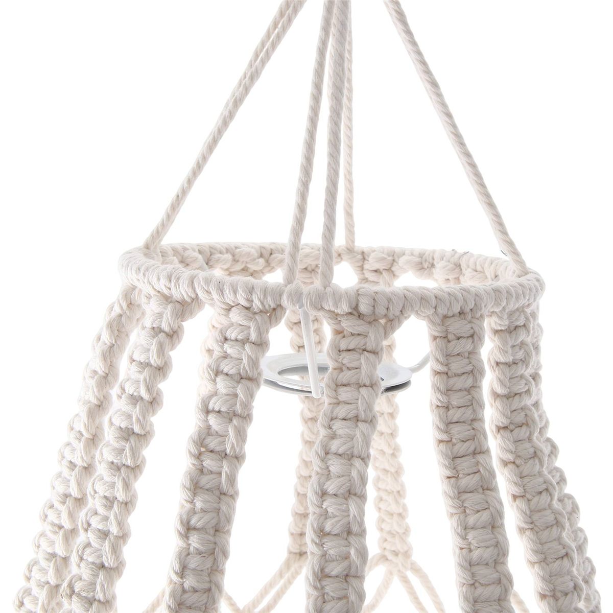 Using natural cotton and steel rings as material and adopting exquisite weaving craftsmanship, this hand-woven lampshade is beautiful and sturdy. It is a multi-functional ornament. Suitable for living room, balcony, cafe, and wedding. The bohemian style and pure white tone of it can bring to these . A wonderful ornament and a nice gift choice.