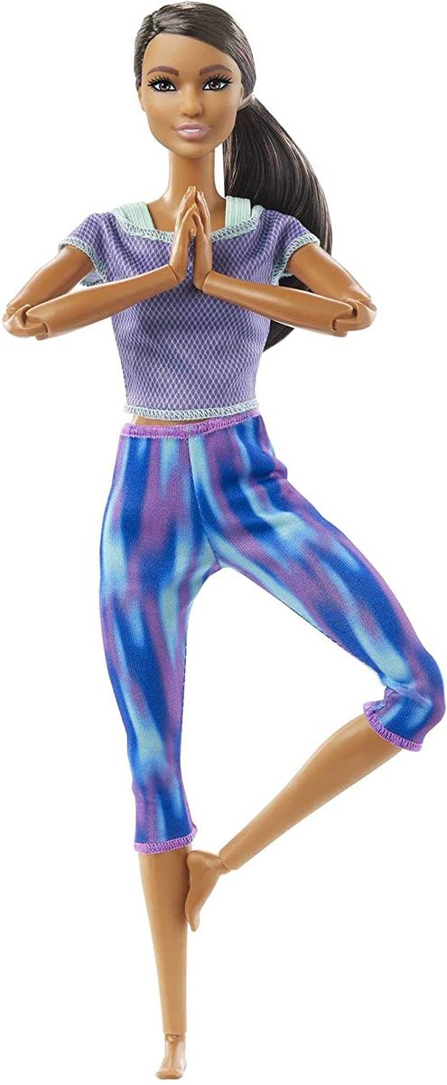 Barbie doll knows the way to be one's best is to give yourself the best care, whether in motion or staying still! Barbie Made to Move dolls can play out lifelike movement both ways with the ability to maneuver and pose in realistic positions. Each doll has 22 "joints" -in the neck, upper arms, elbows, wrists, torso, hips, upper legs, knees AND ankles -for an incredible range of motion. Trendy athleisure-wear encourages all kinds of storytelling and highlights the dolls' dynamic posability. Kids can collect the Barbie wellness dolls to explore self-care and expand their worlds and the possibilities for playtime! Each sold separately, subject to availability. Dolls cannot stand alone. Colors and decorations may vary.
