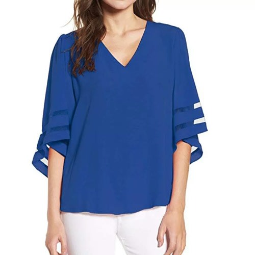 Elevate your wardrobe with this must-have blouse. Made from a breathable woven fabric, this top features quarter sleeves and V-neckline. Simply style with skirt or, leggings, trouser for an elevated formal look you'll love for office or any special occasion.