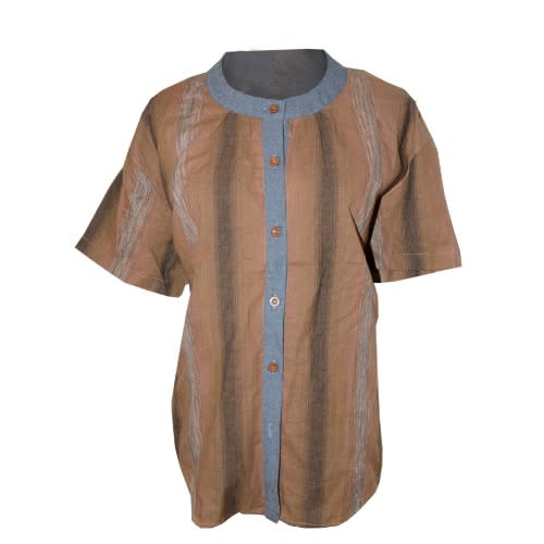 Elevate your wardrobe with this must-have multicoloured blouse. Made from a breathable woven fabric, this top features short sleeves and high-neckline. Simply style with skirt or, leggings, trouser for an elevated formal look you'll love for office or any special occasion.