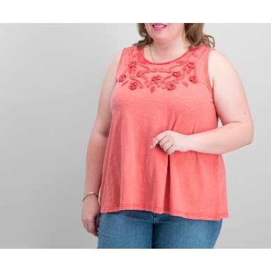 Women's Plus Size Cotton Soutache-trim Tank Top
