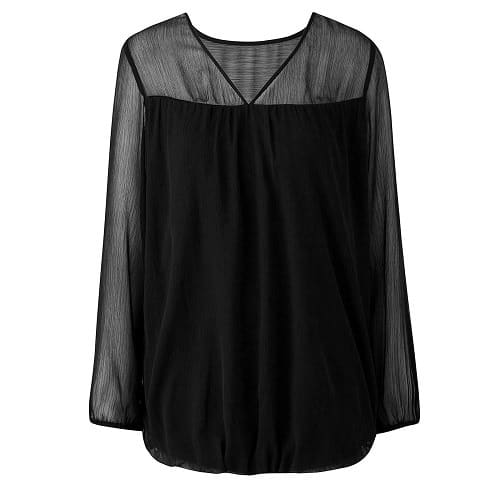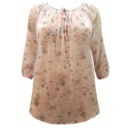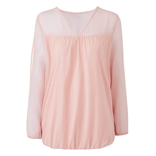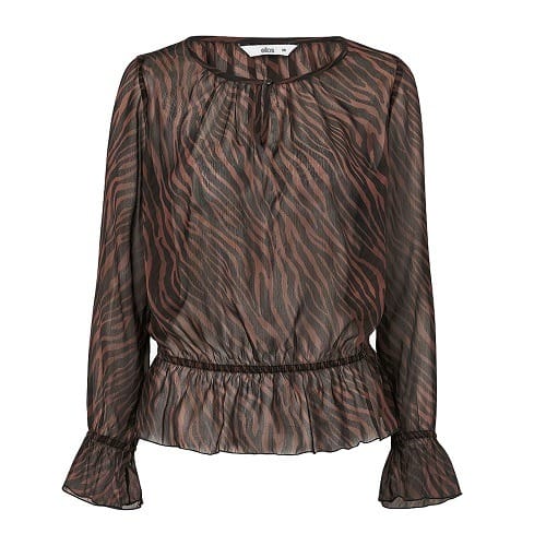 Blouse Iris in woven chiffon. Straight model with inset elastic at the waist/hip and long sleeves with inset elastic at the bottom. R