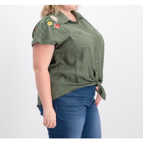 Plus Size Burnout Handkerchief-Hem Top - Olive Green