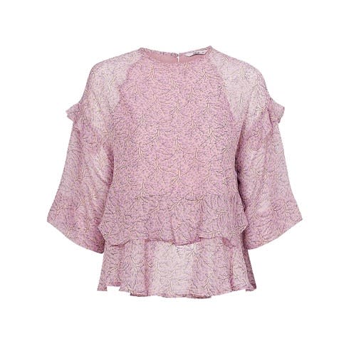 Women Floral Half Sleeve Ruffle Blouse - Pink