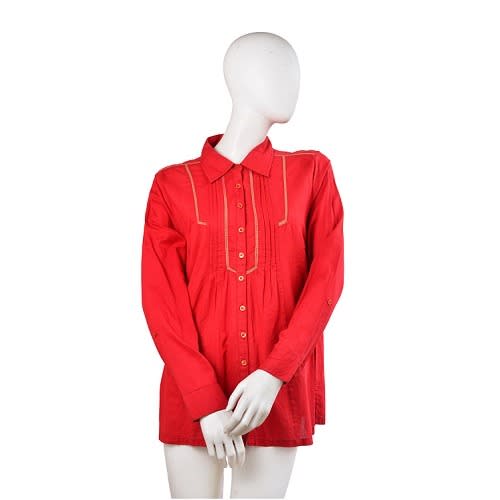 Women Dash soft Pin tuck red long sleeves Blouse