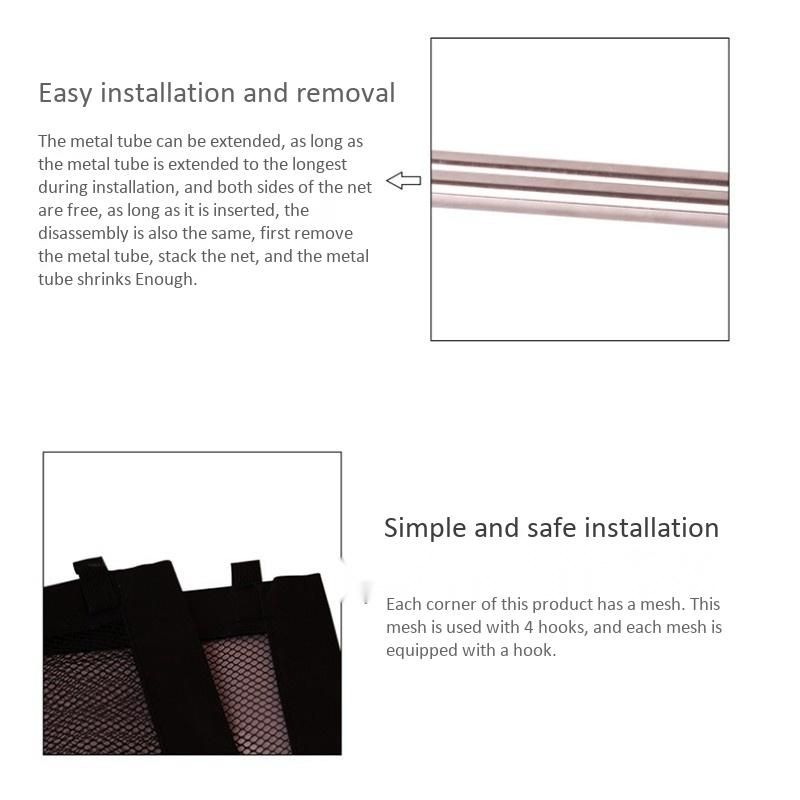 Retractable baby gate is built with tough, partially see-through woven mesh fabric woven. The sticky hooks use the best quality glue, which is more cost-effective than the same products on the market. Withstand abuse from kids, which designed to endure hazardous outdoor conditions. (Note: poles can be retracts rather than magic gate).