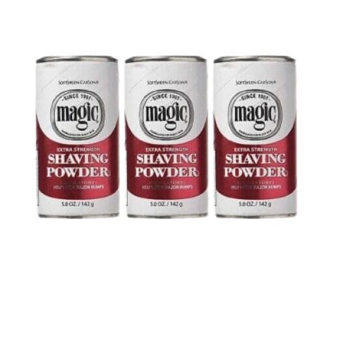 An extra strength shaving powder (depilatory) formulated especially for men to help stop razor bumps. Provide a clean, razorless shave. Extra strength formula for coarse beards. It also for those that experience bumps on their skin after shaving, This is the remedy for stopping bump associated with shaving, try it out today and see the reason it is called magic shaving powder, it truly works like magic on your skin, we recommend you give it a try and you won't regret you did. It also for those that experience bumps on their skin after shaving, This is the remedy for stopping bump associated with shaving, try it out today and see the reason it is called magic shaving powder, it truly works like magic on your skin, we recommend you give it a try and you won't regret you did. An extra strength shaving powder (depilatory) formulated especially for men to help stop razor bumps. Provide a clean, razorless shave. Extra strength formula for coarse beards.
