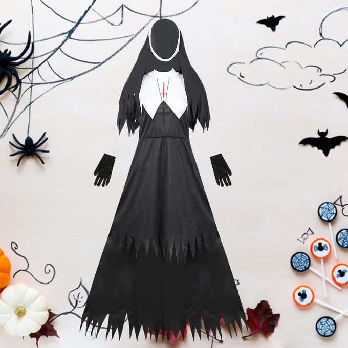 women nun costume;women nun costume halloween party Fanny dress;sorceress cosplay fancy dress costumes outfit;long sleeve nun dress with hat Necklace;halloween witch long skirt stage costume cosplay;scary themed party suit drama masquerade clothing