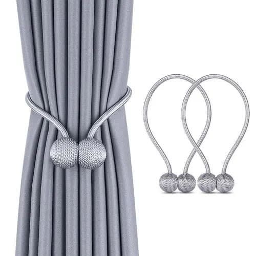New style and Powerful: our curtain holdbacks with Beautiful woven texture appearance,upgrade strong magnet with nickel plating which is smooth and anti-rust,perfect for protecting your draperies.Multiple Use way: Multiple clip ways,these tiebacks could show different style to your curtains, Perfect for drapes, sheers or showerUPGRADE EXCELLENT DESIGN: Curtains without attaching to the wall, no tools required and zero assembly,easy to use without damaging your walls.Easy store from your curtain:easy use and store,when you do not use ,you could clip on the curtain,so easy to findPackage: Total 2 pieces.