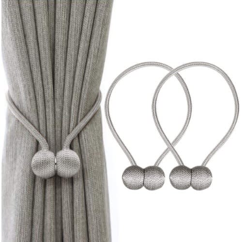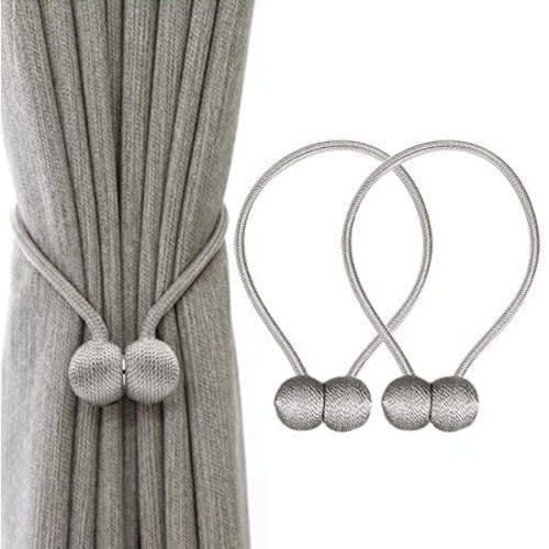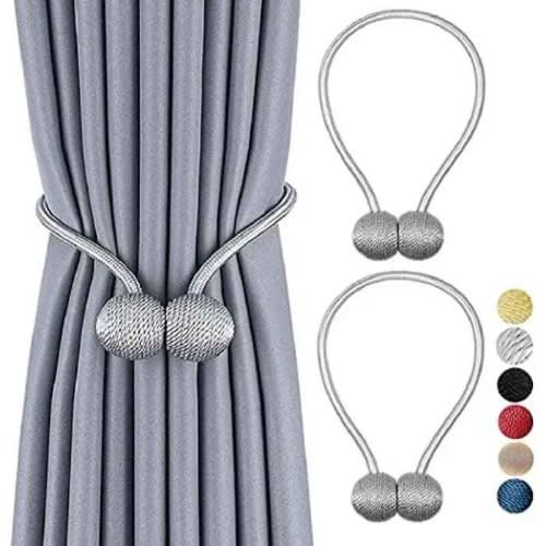 New style and Powerful: our curtain holdbacks with Beautiful woven texture appearance,upgrade strong magnet with nickel plating which is smooth and anti-rust,perfect for protecting your draperies.Multiple Use way: Multiple clip ways,these tiebacks could show different style to your curtains, Perfect for drapes, sheers or showerUPGRADE EXCELLENT DESIGN: Curtains without attaching to the wall, no tools required and zero assembly,easy to use without damaging your walls.Easy store from your curtain:easy use and store,when you do not use ,you could clip on the curtain,so easy to findPackage: Total 2 pieces.