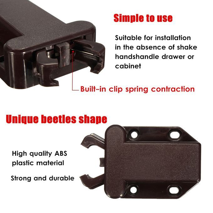 Similar Items Description Features? 1. and high quality 2.Unique beetles shape 3.High quality ABS plastic material 4.Strong and durable 5.Built-in clip spring contraction 6.Press to open or close 7.Simple to use, suitable for installation in the absence of shake handshandle drawer or cabinet