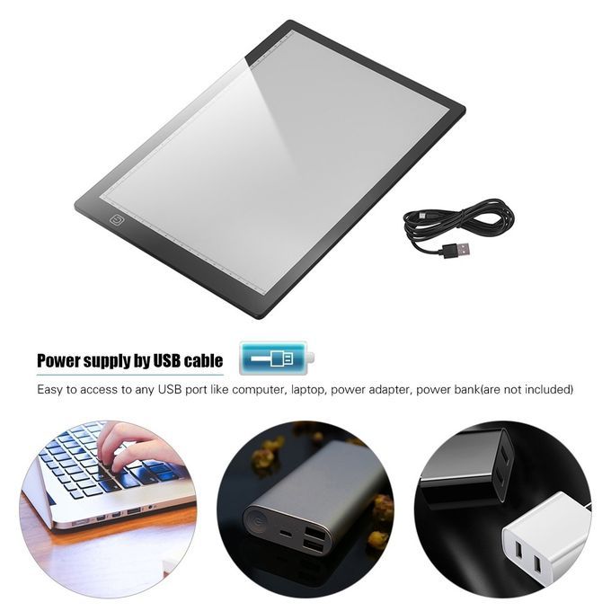 【Magnetic Design】: Upgraded A4 light pad with magnetic design, you can attach the magnets on it to fix the paper, bring better painting experience. (Note: The magnets are not included.)【Ultra-thin & Portable】: The thickness of light pad is only 7mm, with scale on the light pad. Adopting high quality acrylic lighted panel, good heat dissipation, strong flame retardancy, safer to use.【Stepless Brightness Control】: Stepless dimming, only need to touch the button to adjust LED light until you get the required brightness you want, super bright without flickering, the light is eye-protecting, uniform light-emitting, no harm to your eyes.【USB Powered】: Comes with a USB cable, easy to access to any USB port like computer, laptop, power adapter, pow-erb-ank, etc, very convenient to use.【Wide Application】: Can be used for sketching, drawing, 2D animation, calligraphy, stenciling, architecture and clothing design, diamond jewel paint, X-ray viewing and so on. A perfect gift for artists, animators, designers, art enthusiasts, kids, children, students.