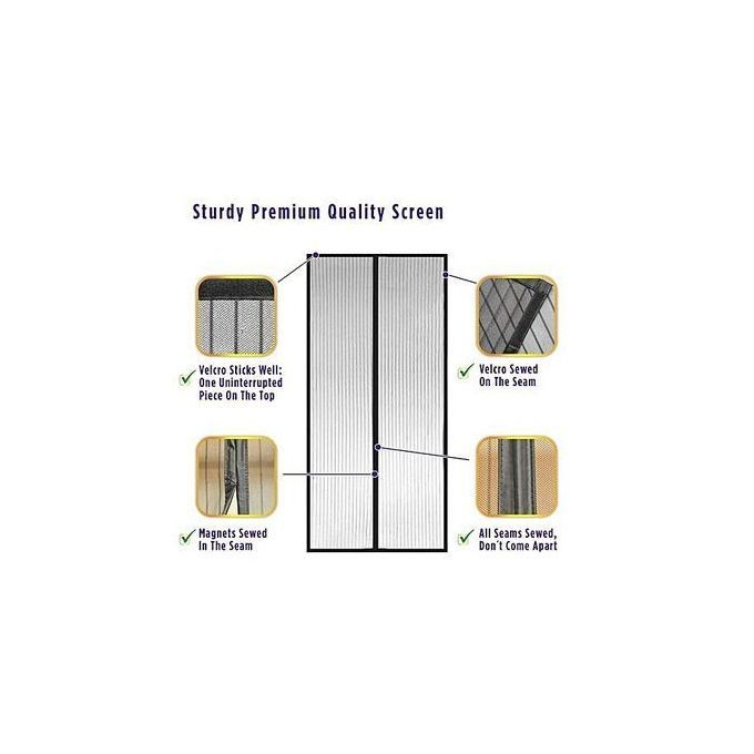 This Magic Mesh is an innovative solution to keep pesky bugs from entering your home. It allows outside breeze to enter your home while keeping bugs and insects out.Whether you have your hands full or a forgetful family member, you can still let fresh air in and keep those bugs out! Suitable for installation on the doors that are frequently opened and closed.The Magnetic door mesh is your total solution to keep flying bugs out of your homes, hospitals, hotels, hostels etc. It is safer to use than spraying insecticides in your room(s). It is also economical and easier than other methods of killing insects. Great on wooden doors, Perfect on metal doors.Suitable for single doors, sliding doors or caravan doors. Easy to put together, no tools required. Folds up for easy storage