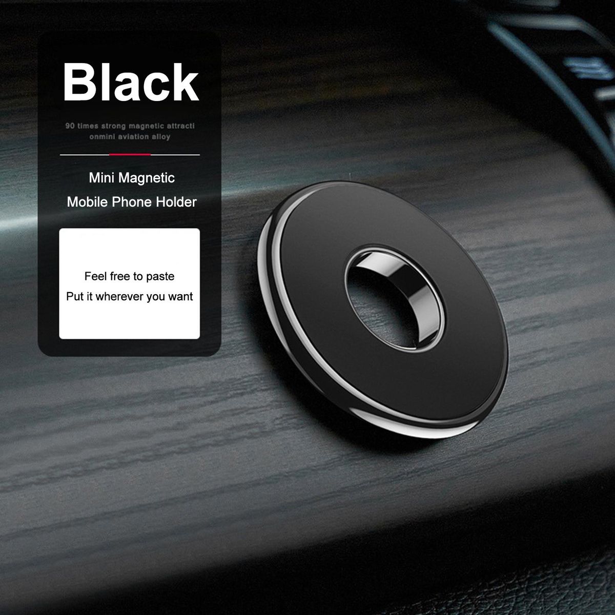 The mobile phone holder is easy to install, just stick it on a flat surface with double-sided adhesive. Its strong magnetic force can firmly absorb the phone and allow it to rotate at any angle.