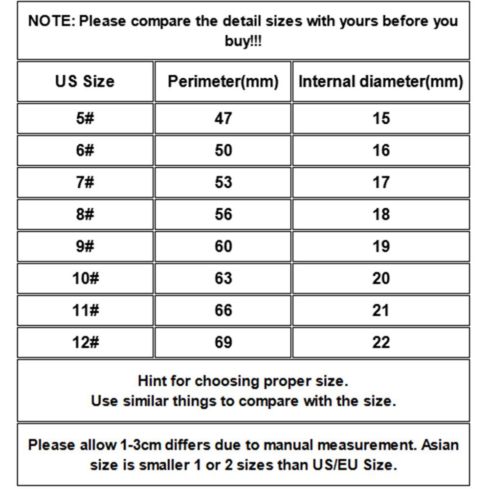 US Size Perimeter(mm) Internal diameter(mm)