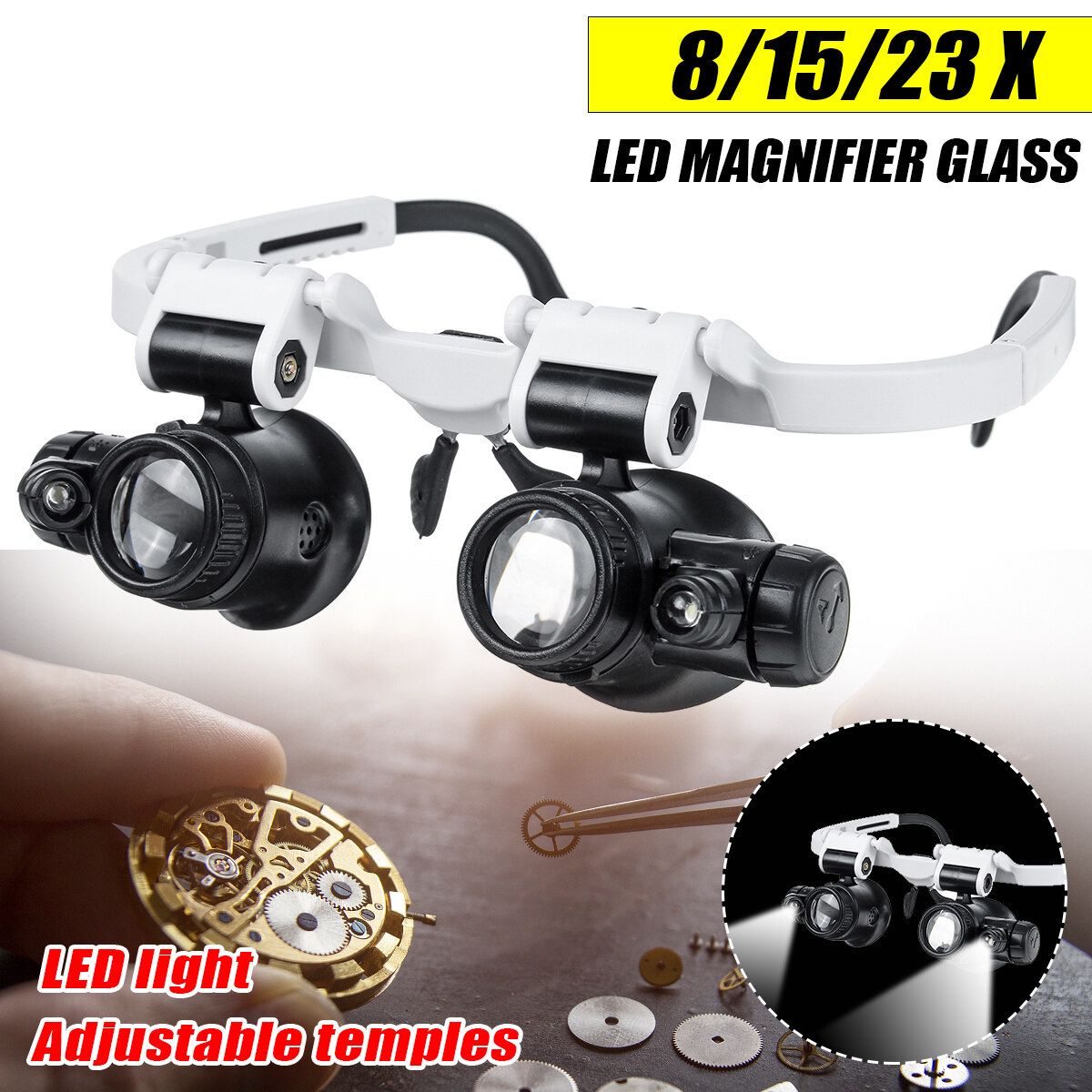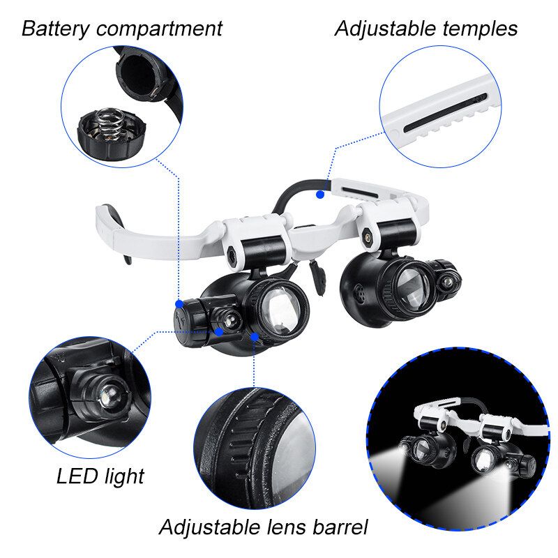 Left and right binocular magnifier/magnifying glass with adjustable LED.