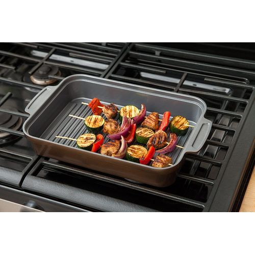 Iris Ohyama Steam grill pans not only create beautiful grill marks on food, but they allow for quicker, healthier cooking. Greasy fats and oils run off into the sides of the pan, and cooking with the lid on reduces cooking times by up to 35%.Perfect for burgers, salmon, chicken, scallops, vegetables and more.