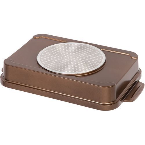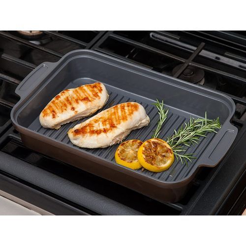 Type: grill pan with lidUse: baking, toasting, grilling, grillingHeat source: gas, electric, halogen, induction, vitroceramicsShape: rectangularHandle type: fixMaterial: stainless steelCover material: heat-resistant glassInterior material: ceramicHandle material: stainless steelFeatures: dishwasher compatible, stainless steel steamer, oven usable, dishwasher safe, ceramic surface resistant to high temperatures (220 ° C), ribbed or modified shaped bottom inner layer allows cooking with little grease, excellent heat retention, handle does not heat up transfer, for induction and normal cooker, 2 fixed handles, even heat distribution, saves 35% energyPackage contents: 1 grill pan, 1 lidColor: bronze
