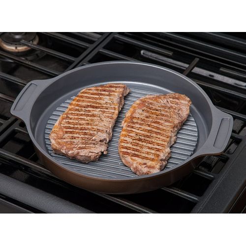 Iris Ohyama Steam grill pans not only create beautiful grill marks on food, but they allow for quicker, healthier cooking. Greasy fats and oils run off into the sides of the pan, and cooking with the lid on reduces cooking times by up to 35%.Perfect for burgers, salmon, chicken, scallops, vegetables and more.The tempered glass lid traps moisture and reduces cooking time by up to 35%. Due to the sloping bottom of the pan, excess oil collects on the side of the pan. Perfect for steaming and grilling and the double grill rows leave beautiful grill marks on the food. The eco-friendly premium Ceramtec nonstick ceramic coating ensures easy baking and cleaning. The vessel is free of PTFE, PFOA and cadmium.