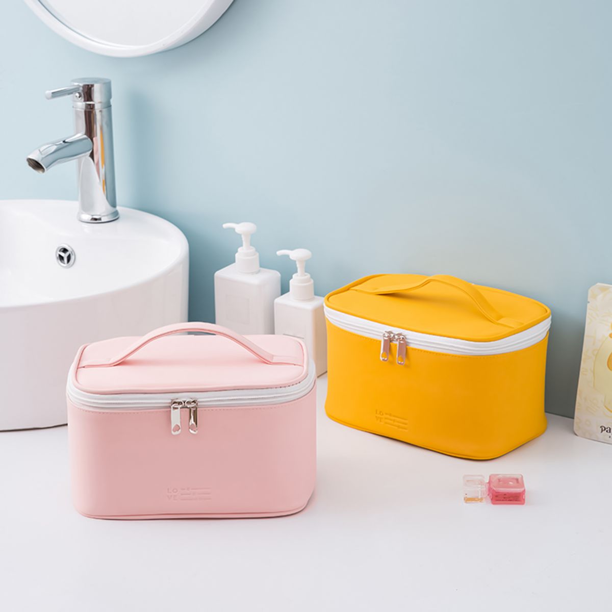 This makeup bag which have portable design is suitable for traveling and easy to carry which is very useful.