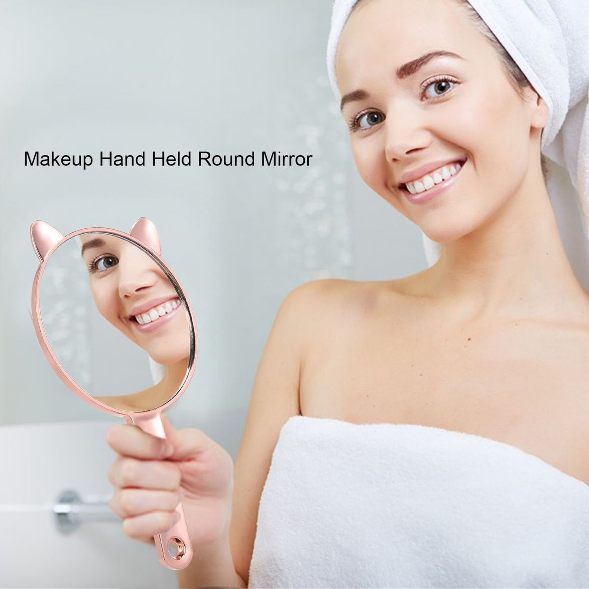 This hand held mirror could be a decent gift for female friends, sisters or daughters. It is finished in high quality shiny rose gold coating. The hand held mirror is encased in a solid frame made with thick plastic. The surface of the mirror is made of high definition smooth mirror without distortion or vagueness. Don\'t hesitate, buy it now!