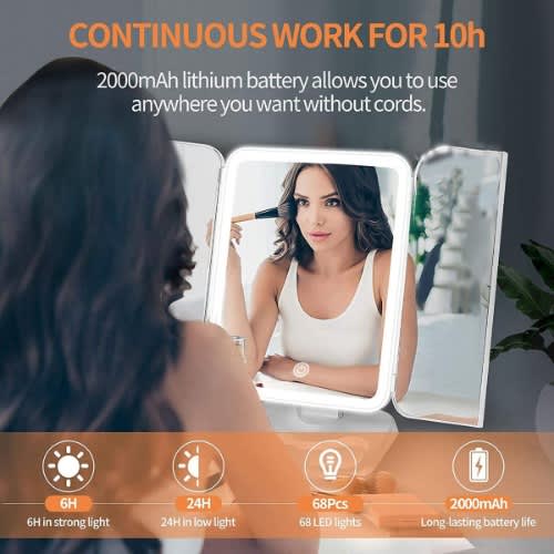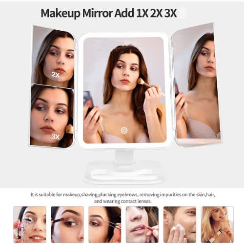Buy Makeup Mirror With Lights - 3 Color Lighting Modes - 68 Led Trifold Mirror in Nigeria