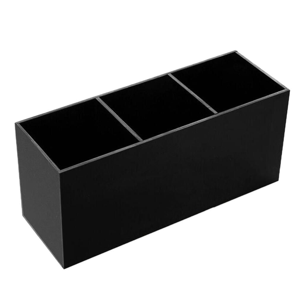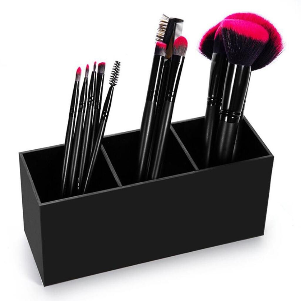 Takes up very little room on your vanity tabletop with 3 slots to separate your makeup brushes from your and lip liners pencils.