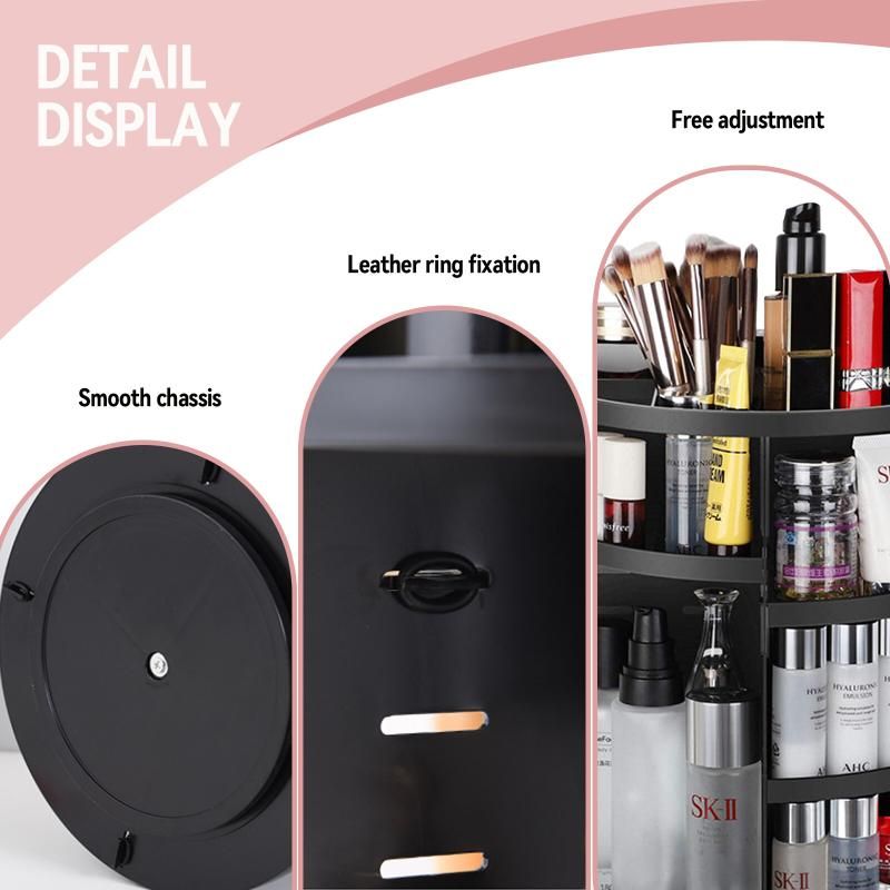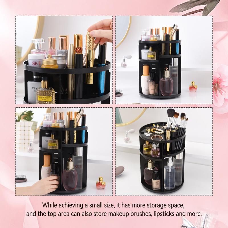 The makeup organizer can be rotated 360 degrees, and the roulette at the bottom makes the rotation very smooth, stable and noise-free. The rotating design allows you to easily get items from all sides.