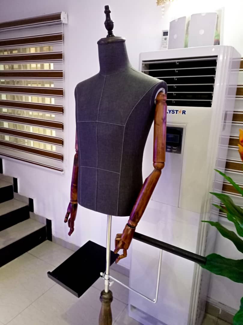 it is used by fashion designers, fashion houses to display suits, Agbada etc. it can also be used to check male cloth fitting