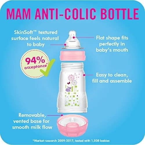 Buy MAM - Usa Baby Bottles For Breastfed Babies - Anti-Colic - 9 Ounces - 1 Piece - Pink in Nigeria