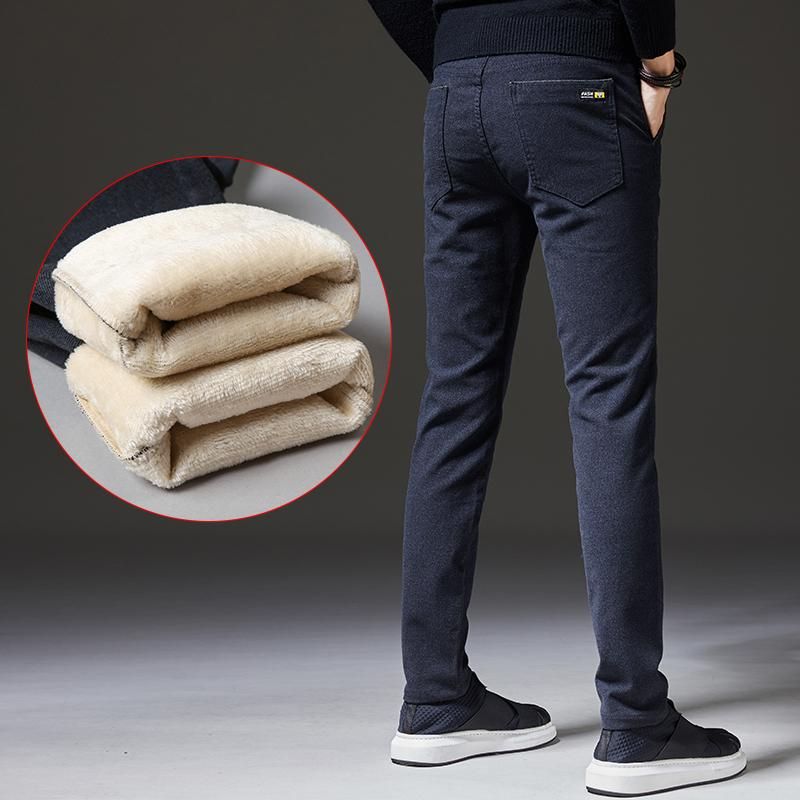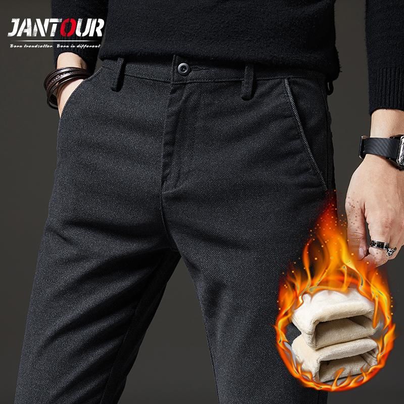 Pantalones informales de lana para hombre pantalon calido de terciopelo negro gris y azul para negocios talla grande 28 a 38 novedad de 2020