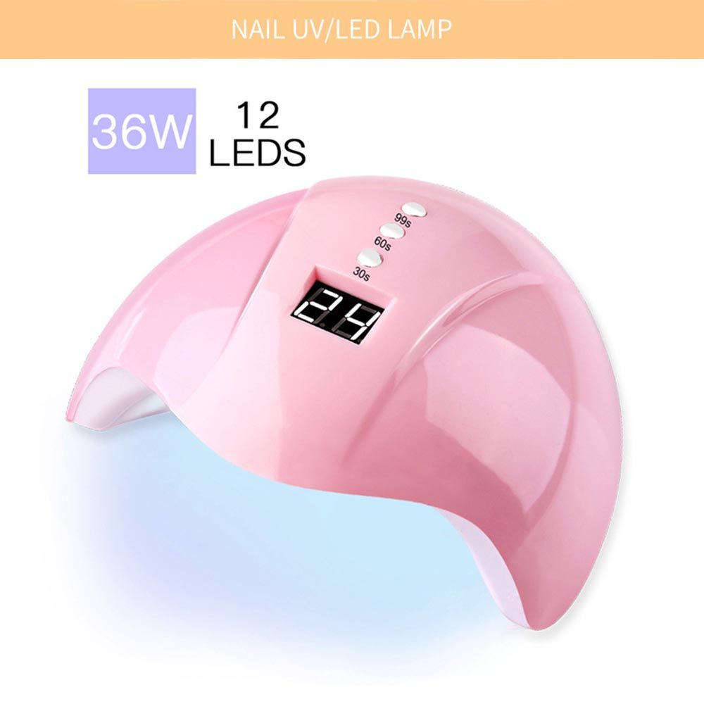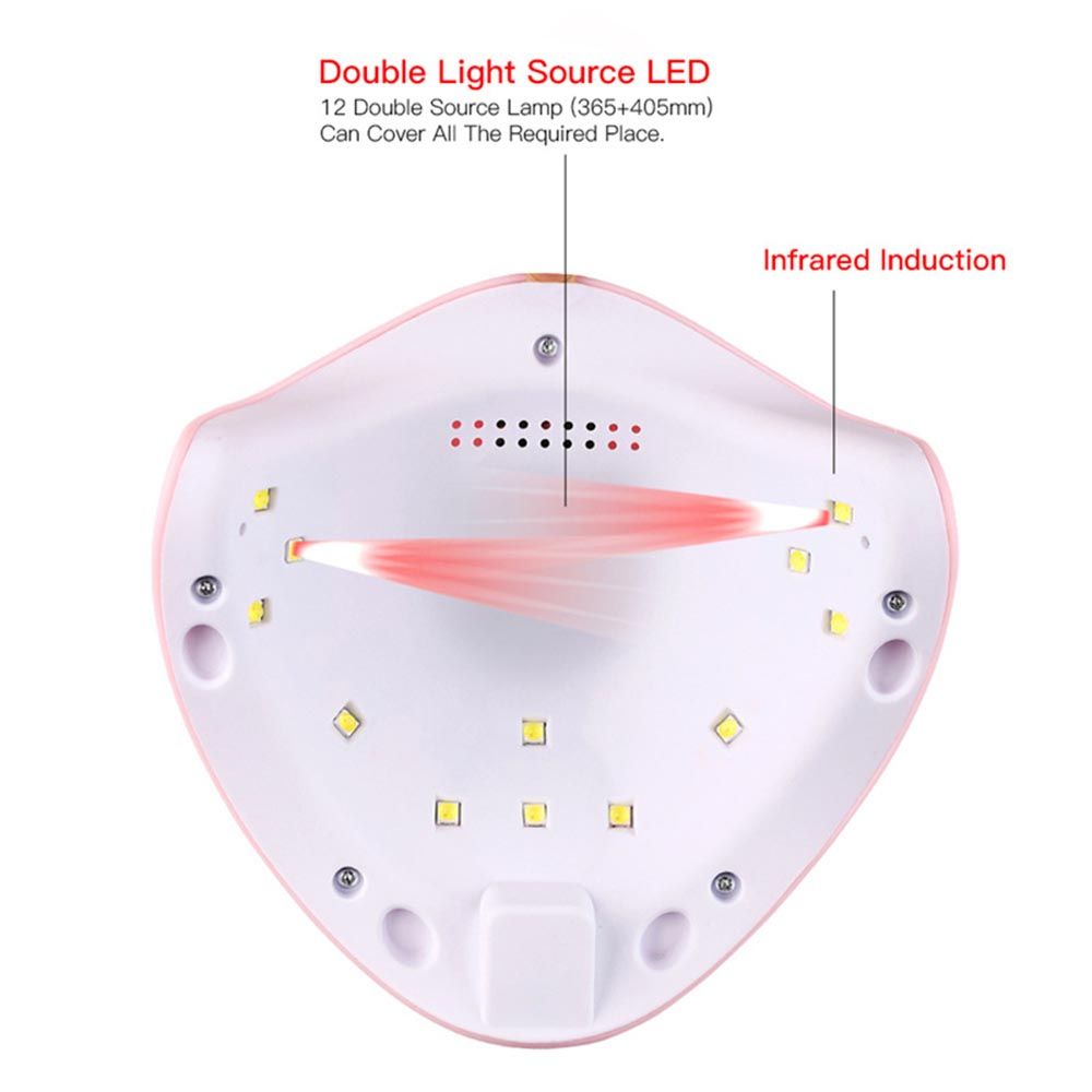 The nail lamp has 12 double source L-EDs with infrared induction, 3 t-ime setting (30s, 60s, 99s).