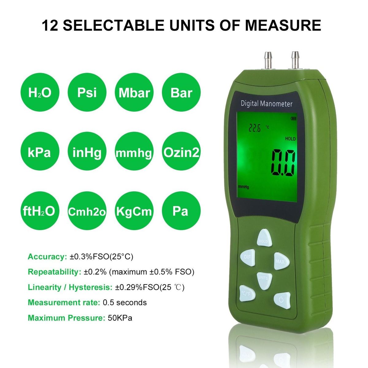 Buy Manometer Digital Air Pressure Meter 12 Unit Dual Port Differential Pressure Gauge HVAC Gas Pressure Tester Large LCD Backlit Auto Power Off Handheld Barometer Natural Gas Analyzer in Nigeria