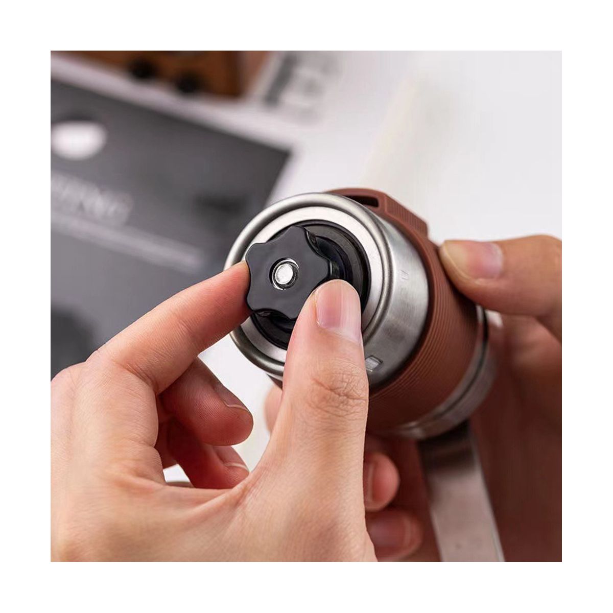 [ ]Aluminum alloy body;Moderate weight;A square pattern for easy-to-grip;Most of the parts of espresso grinder are made of metal alloys to balance the weight and the felling.