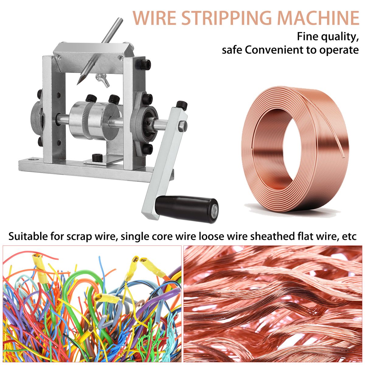 This product is suitable for household wires, soft wires, single-core wires, scatted wires, cable lines and so on. It adopts the principle that hand-pulled wires meet the scratch line skin through the feeding slot. It is easy for you to use, come on and try it.