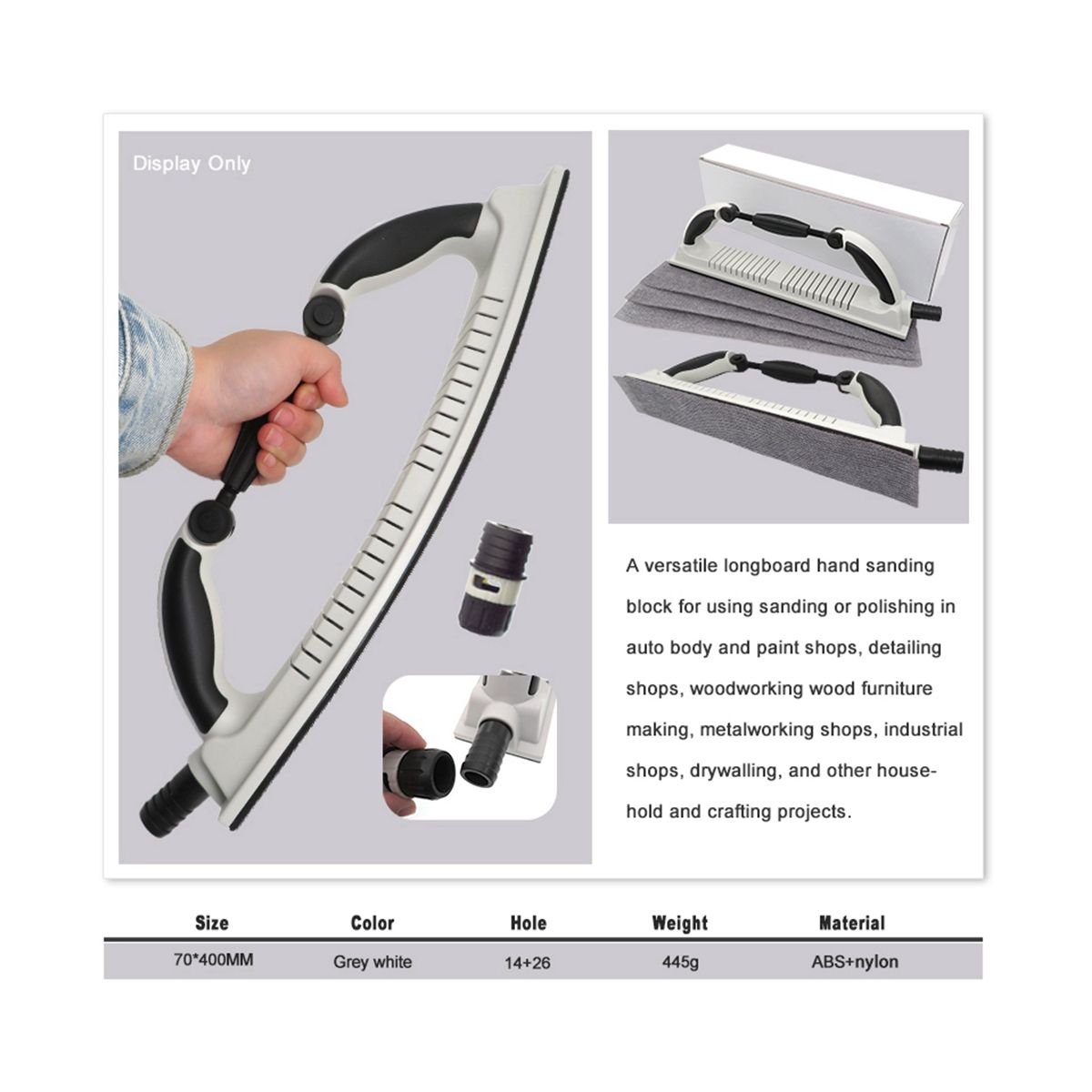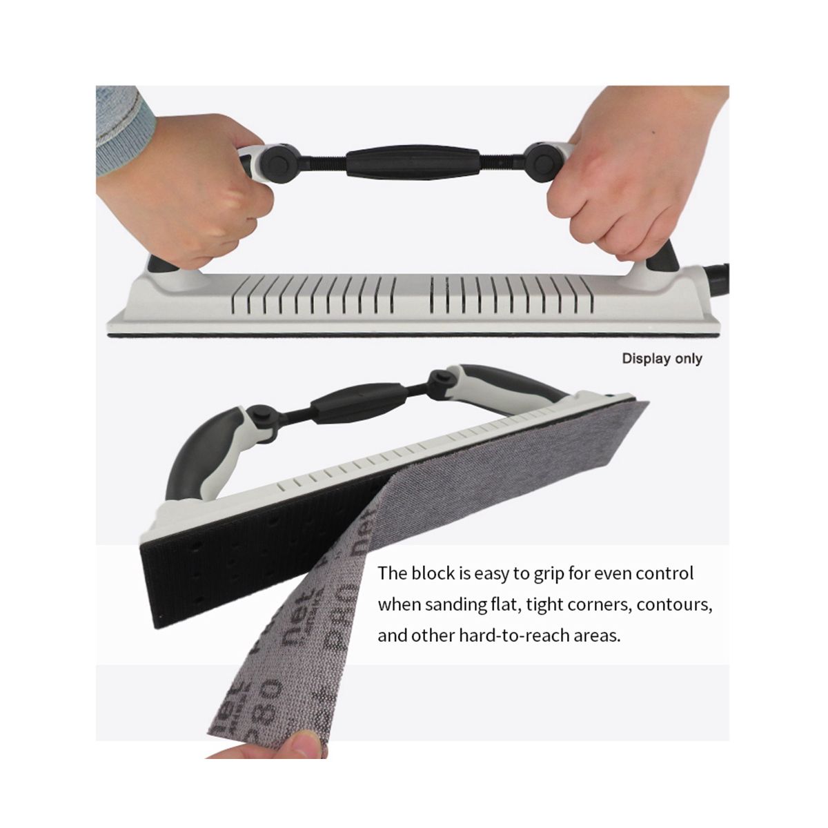 High quality 2-3/4 inchwide long board hand grinding block, which is the standard width of long board file sandpaper. You can easily attach the hook-and-loop long file sandpaper to it. The block is easy to grasp and evenly controlled when grinding flat, narrow corners, contours and other hard-to-reach areas.
