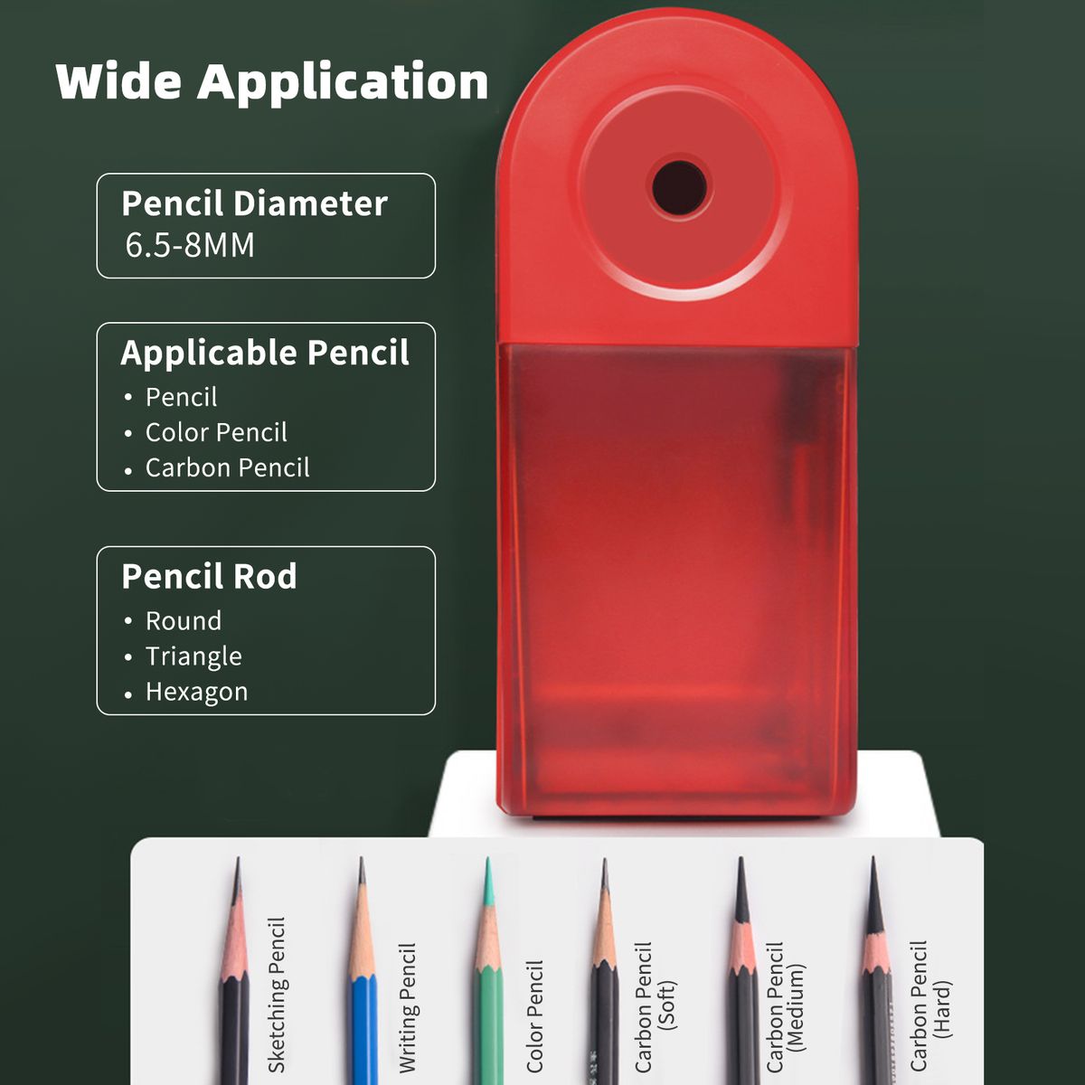 Features:Manual Pencil Sharpener: Hand crank pencil sharpener, automatic pen in and out, suitable for 6.5-8mm pencils, color pencils, carbon pencils, etc.