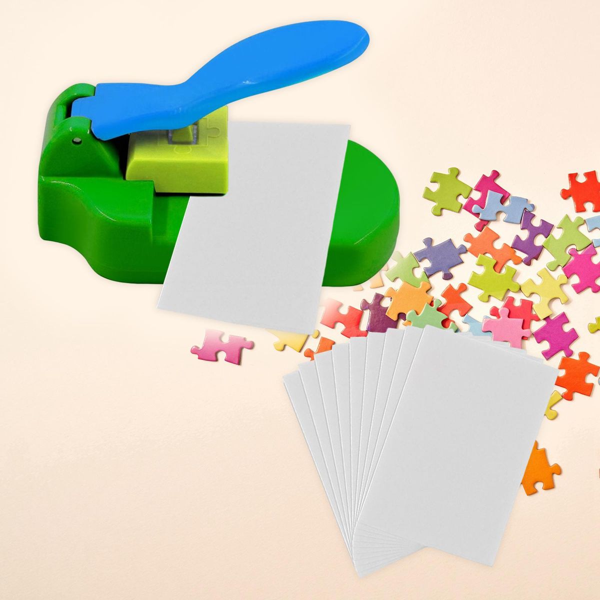 Jigsaw puzzle machine: creative , picture photo cutter, DIY handmade toys for kids.Easy to use: The design saving, and children can use it easily. It can press paper, cardboard, self adhesive paper, corrugated paper, and sponge paper.Uses: Great for creating jigsaw puzzles.Applicable: Can be used for kids crafts, greeting card making, art design activities and scrapbook DIY etc.PERFECT GIFT: The perfect gift for DIY enthusiasts, ideal for parents and children and teachers and students.