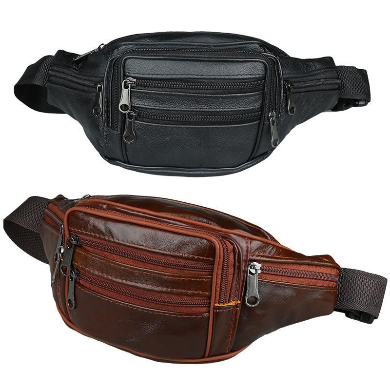Buy Manufacturers wholesale first layer cowhide mobile phone pockets running sports mini pockets diagonal men's outdoor genuine leather pockets black 10 inches in Nigeria